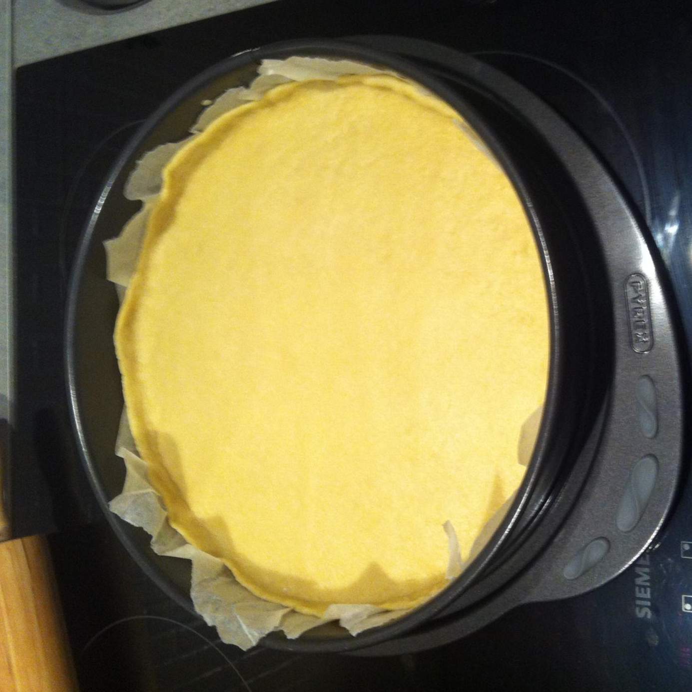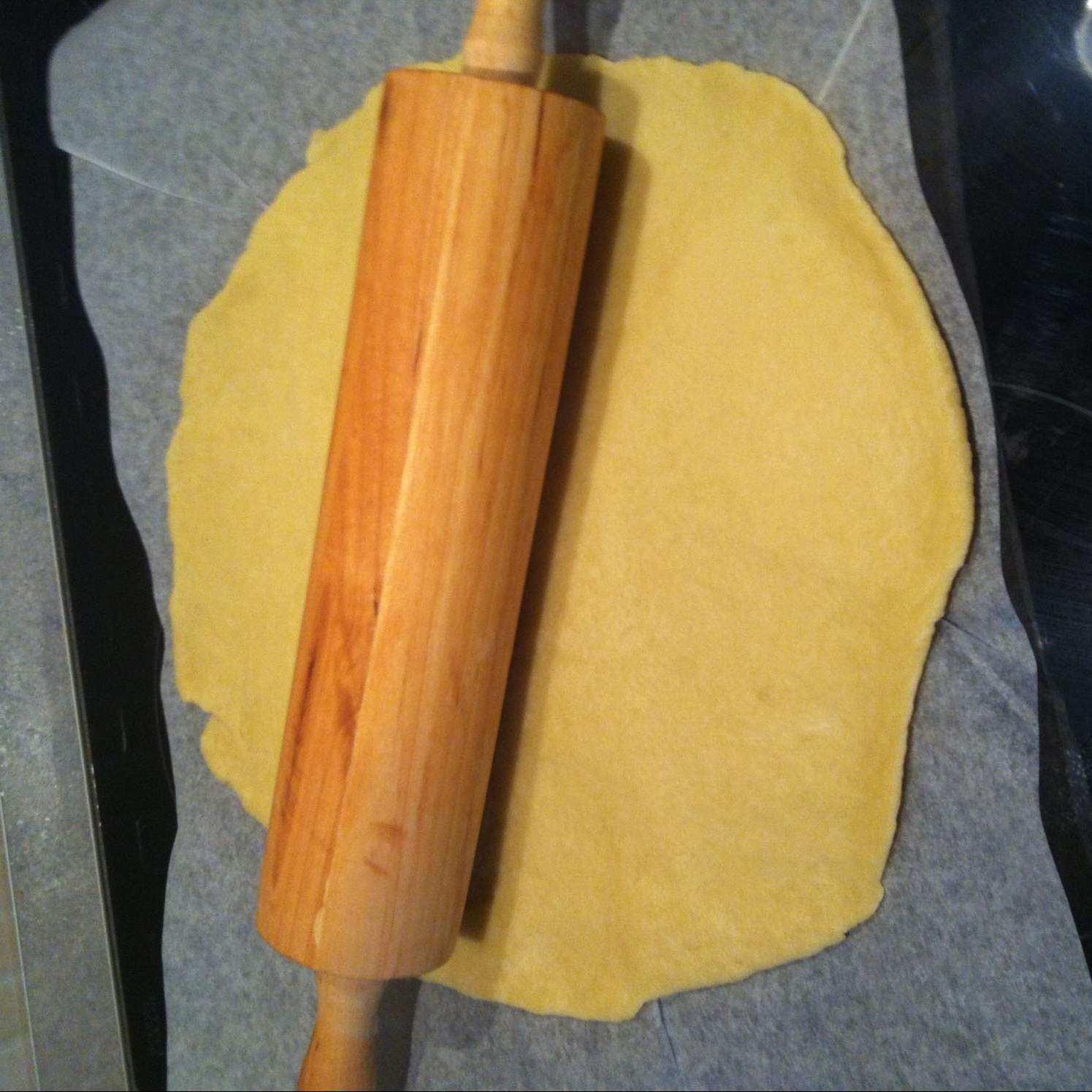 Con l'aiuto di un mattarello stendere la pasta su una suerficie infarinata o su carta forno e dare la forma della teglia che andrete ad utilizzare.