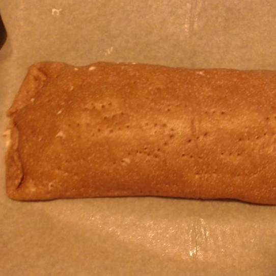 In una ciotola mescolare il radicchio a cubetti (non cotto e pulito in precedenza), formaggio a cubetti, pecorino, panna e noci triturate grossolanamente. Prendere l'impasto al vino e disporlo sopra la carta da forno, e con l'aiuto di un mattarello cominciare a titare l'impasto sottile (per una teglia della grandezza di circa 35 x50 cm) con una forchetta bucare l'impasto su più punti. Dopodichè stendere sopra il ripieno su tutta la superficie e con l'aiuto della carta da forno cominciare ad arrotolare l'impasto su se stesso e chiudere i bordi e con la forchetta bucare in più punti la superficie. Mettere in forno a 180 gradi per 30 minuti, controllate la cottura se necessario continuare la cottura.