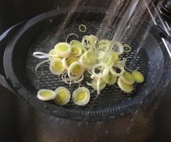 - Procedere allo stesso modo con il porro o cipolla, ma questa volta usare il vassoio varoma