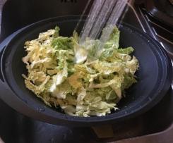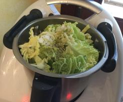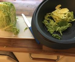 - Nel frattempo tagliare la verza a listarelle sottili e metterla dentro il recipiente Varoma
