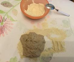 "coperchio chiuso" e metterlo in un piano di lavoro infarinato con un po’ della farina di miglio messa precedentemente da parte e impastare con le mani leggermente per ottenere un panetto liscio ed omogeneo. - Mettere il panetto in una ciotola infarinata, coprire con un panno pulito e metterlo dentro il forno con una temperatura di 22 gradi circa, dovrà raddoppiare.