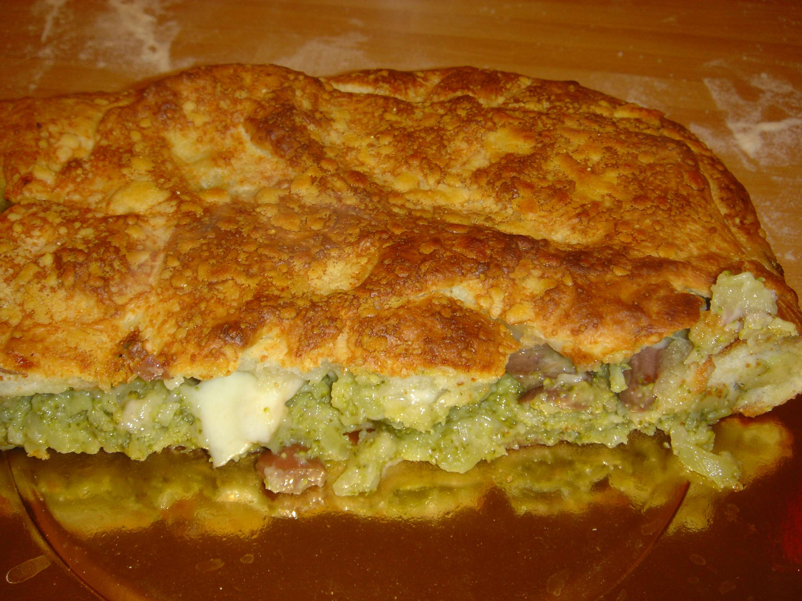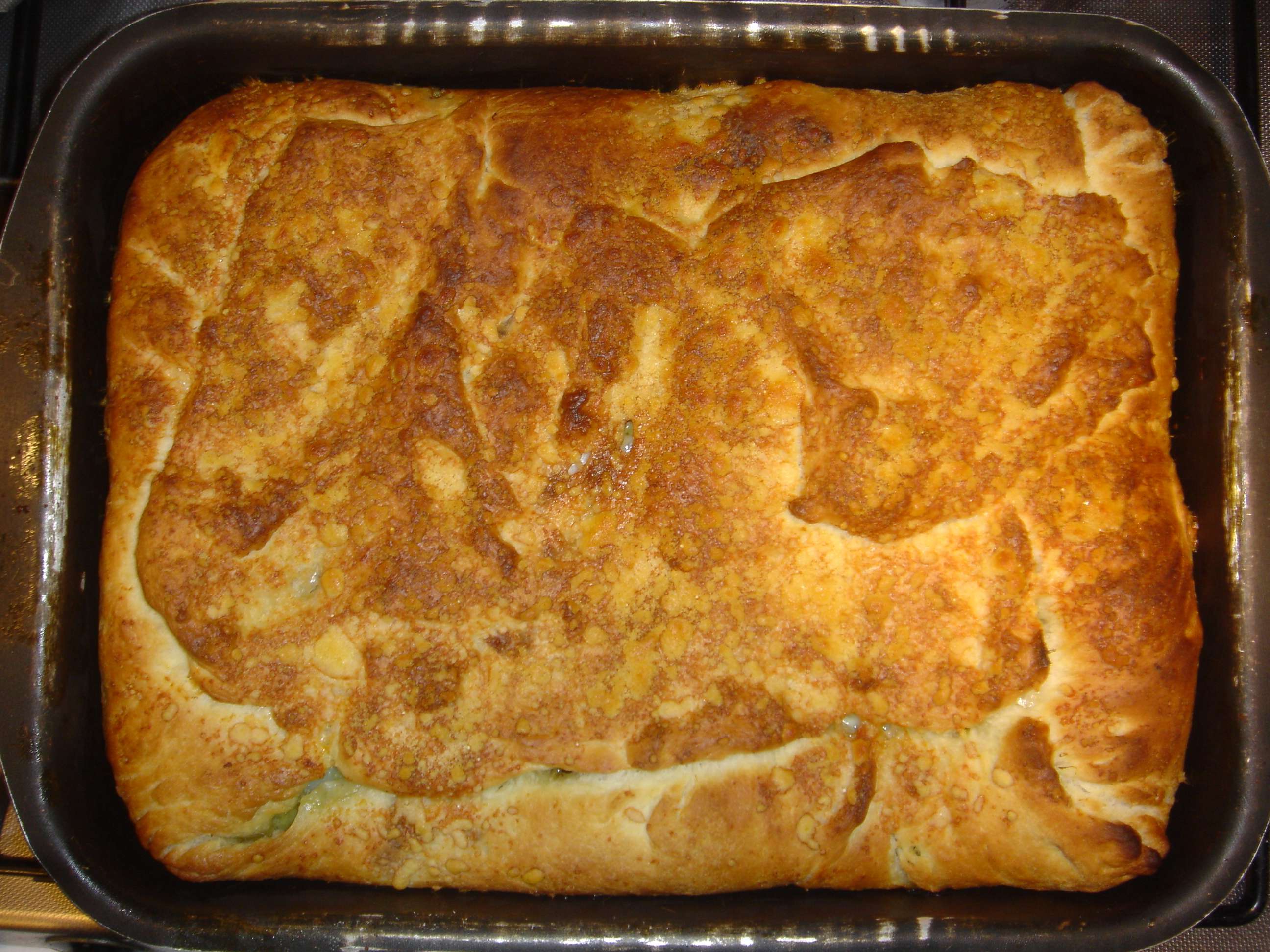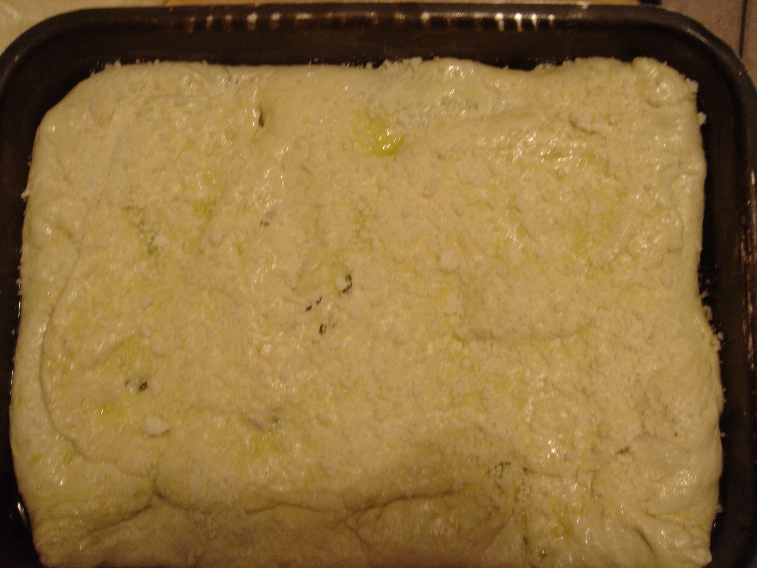 Quando la pasta sarà lievitata dividerla in 2 parti. Oleare una teglia rettangolare (25X35) e distendere la prima parte di pasta.