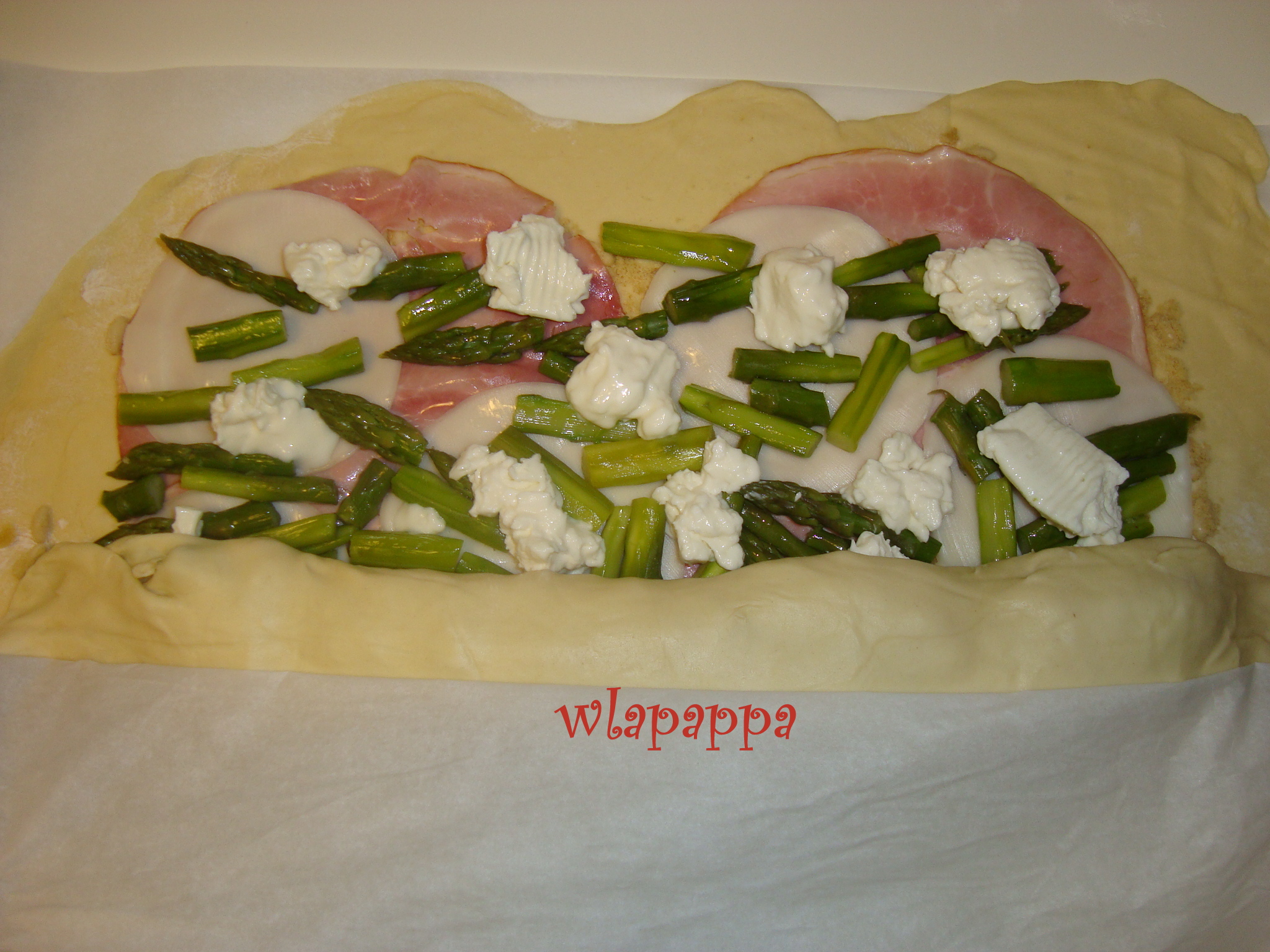 "velocità soft" Adagiare gli asparagi sopra le fette di provola e aggiungere la crescenza a pezzetti.