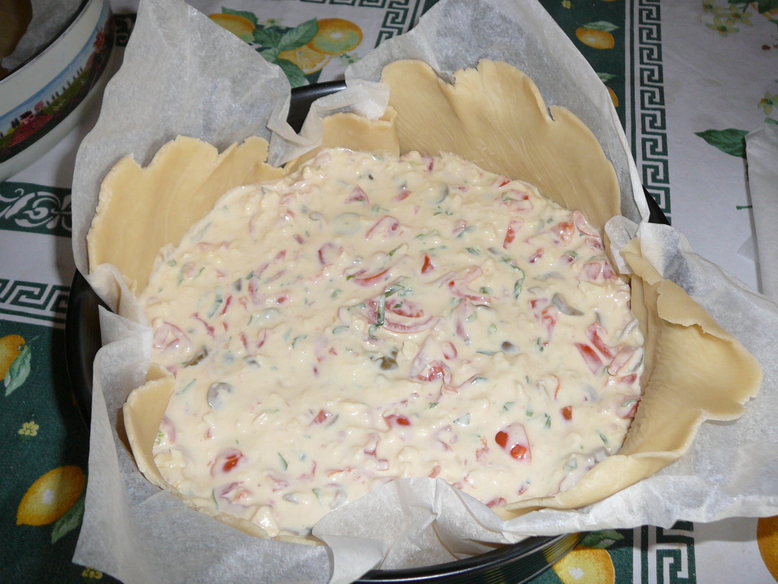 Amalgamare leggermente l'impasto con le mani e stenderlo con il mattarello (io non lascio l'impasto in posa in frigorifero perchè è più facile da lavorare se lo stendo subito), deporlo su carta da forno all'interno di una tortiera a cerniera, lasciando i bordi come vengono più larghi della base della tortiera per poi ripiegarli all'interno.