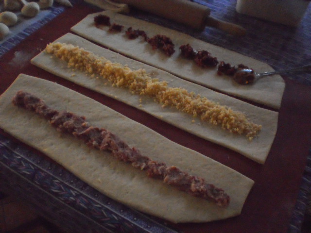 Ecco la mia con 3 ripieni diversi, uno per ogni striscia di pasta: stracchino e porchetta, verdure grigliate e caciocavallo, gorgonzola e mortadella