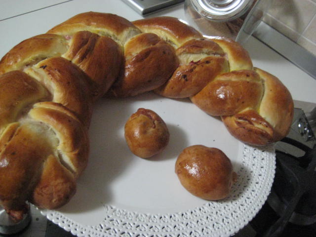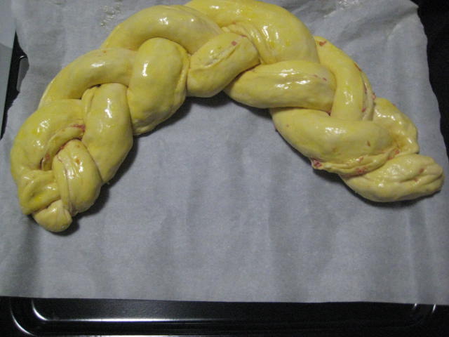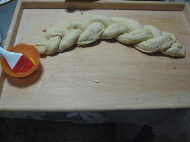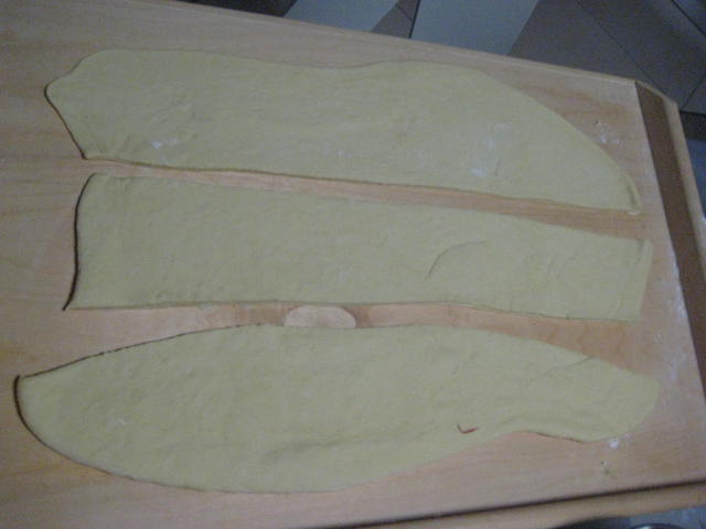 i 3 cilindri per formare la treccia.Spennellare con il tuorlo o con il latte e lasciar riposare per