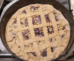 Con l'impasto avanzato stendere con il mattarello e tagliare delle strisce lunghe che andranno adagiate sulla torta a formare una grigli.