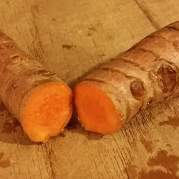Sbucciare la curcuma fresca e metterla nel boccale, tritare 6 sec/Vel 4, raccogliendola con una spatola sul fondo del boccale e ripetendo l'operazione se necessario, fino a sminuzzarla. Riporla in una ciotola.