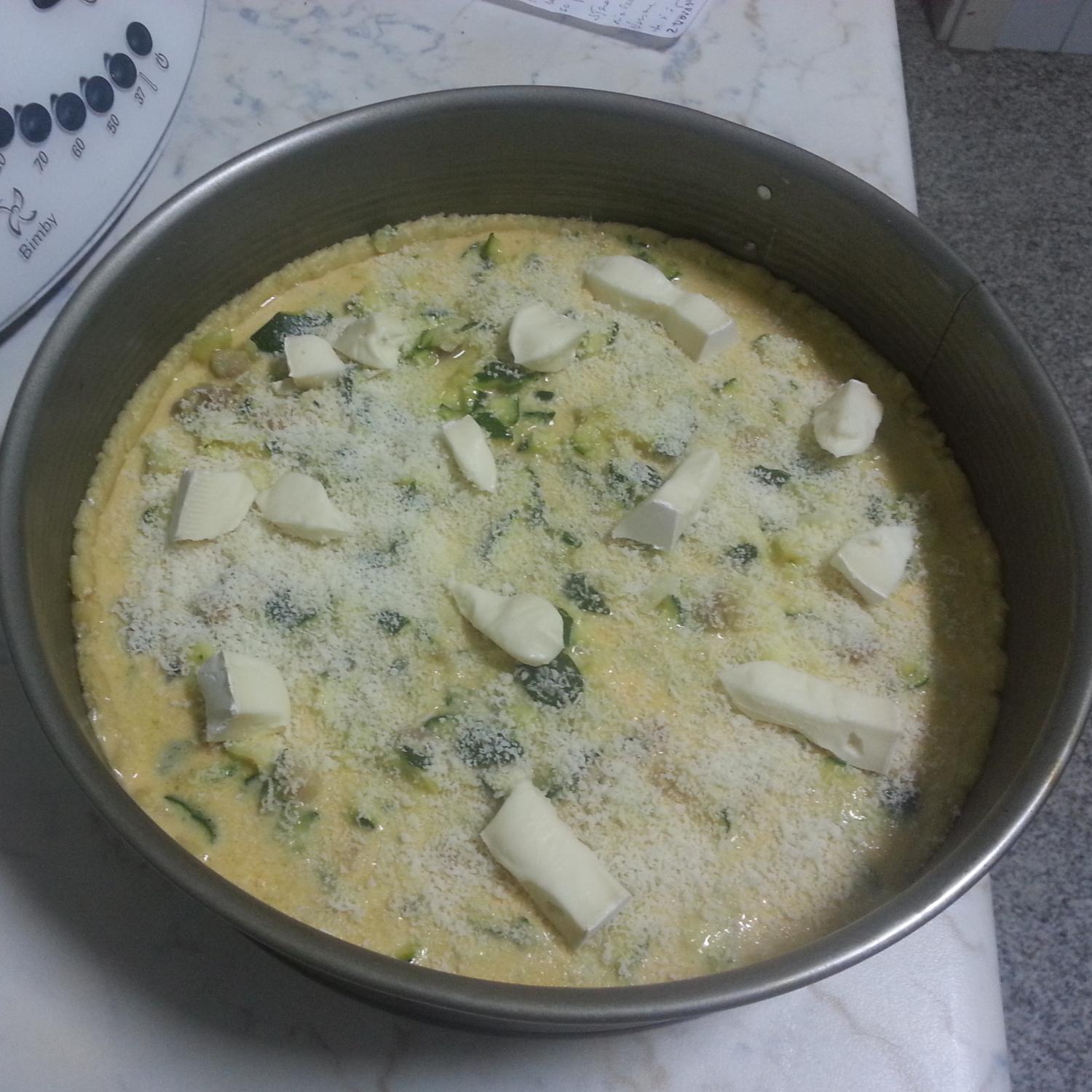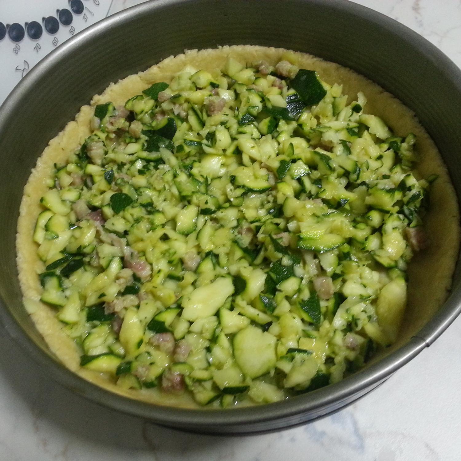 Stendere l'impasto nella teglia rialzando i bordi, versare le zucchine senza il liquido che si è formato.