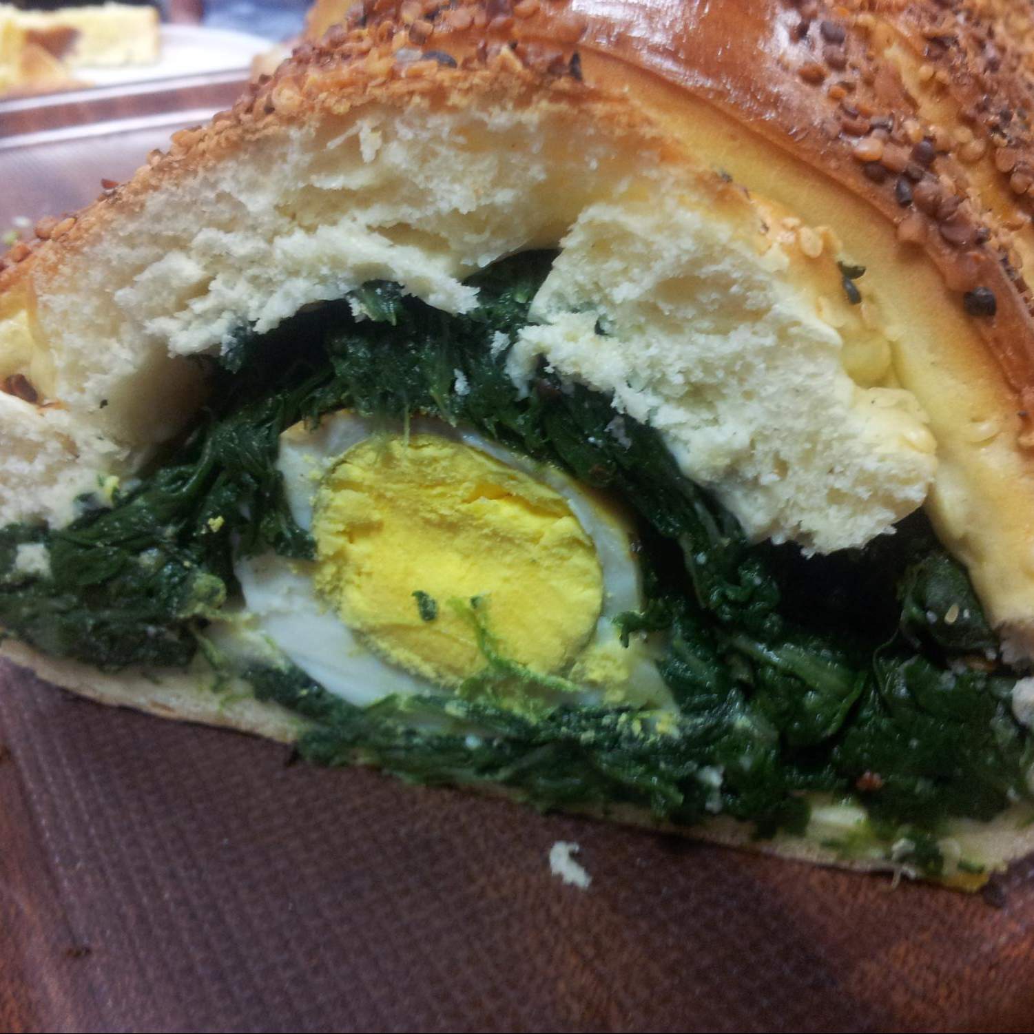 1. Preparare l'impasto del Panbrioche come da ricettario base 2. Cuocere gli spinaci per 10 minuti in poca acqua bollenta salata, scolarli e strizzarli. 3. Stendere l'impasto e dare una forma rettangolare, dividerlo in tre parti uguali per la lunghezza (ma senza tagliarlo). Nelle due parti laterali con un coltello fare delle incisioni a lisca di pesce. 4. Nella parte centrale posizionare la metà degli spinaci e la mozzarella tagliata a dadini, le uova sode. il sale e il pepe. coprire con l'altra metà degli spinaci. 5. Formare la treccia, spennellare la superficie con il tuorlo e il latte e i semi di sesamo. 6. Cuocere in forno a 200° per 15/20 minuti