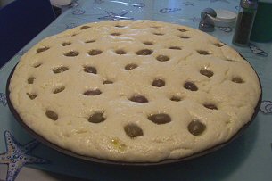 "velocità spiga" .mettere l'impasto in una teglia (l'impasto sarà appiccicoso) disporre le olive e un filo di olio,lasciare lievitare per 2 ore oppure mettere in forno a 50° per un ora.