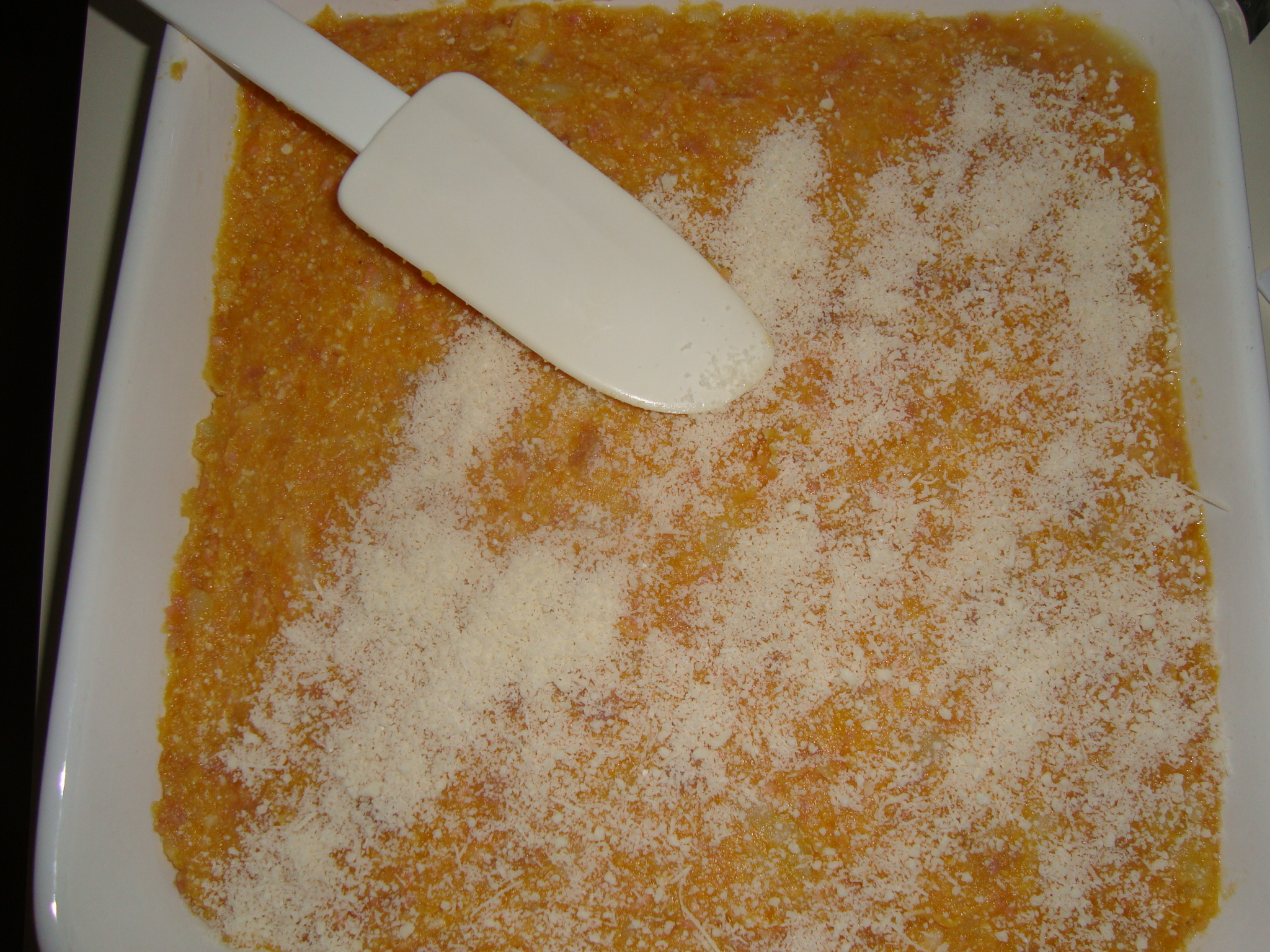 "antiorario" vel. 2 spatolando; - Ungere di burro una pirofila, mettere il composto, livellarlo con una spatola ed infine cospargere di grana;