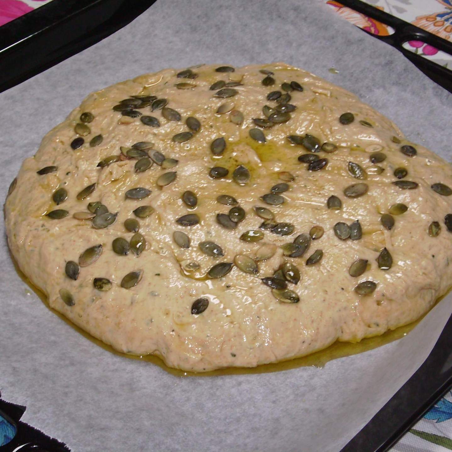 SPENNELLARE LA SUPERFICIE CON DELL'OLIO EVO E SPARGERE I SEMI DI ZUCCA