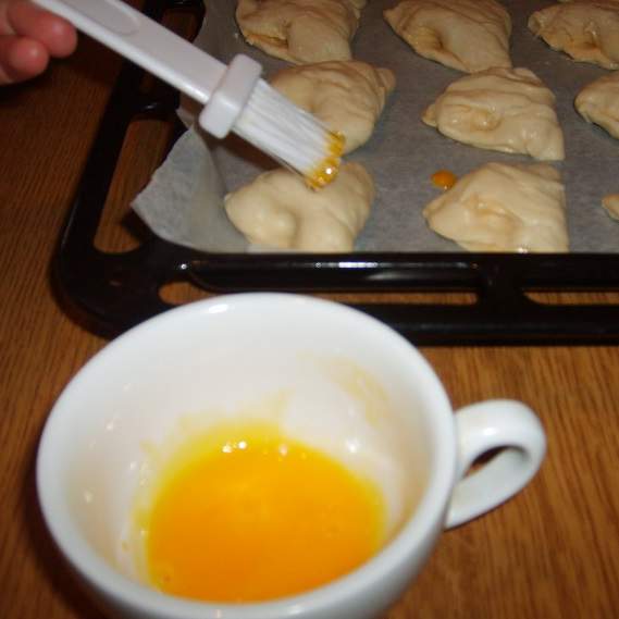 Appena terminiamo la teglia velocemente spennelliamo il tuorlo d'uovo per dorare