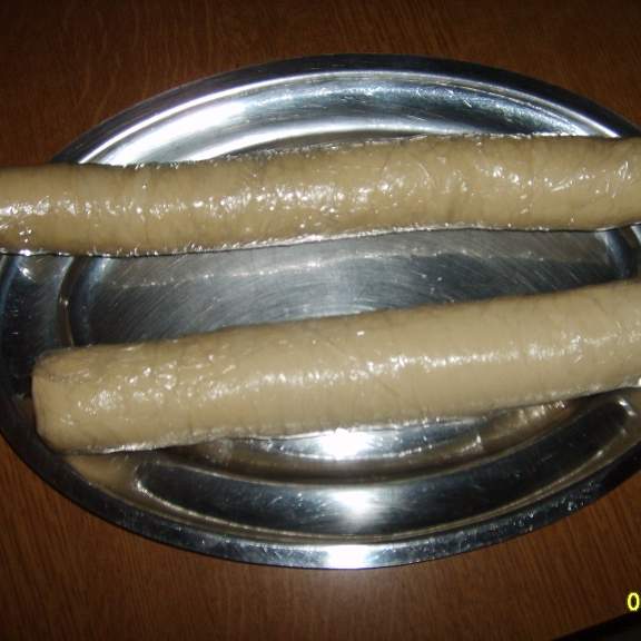 Quando finiremo tutta la pasta con questo procedimento dovremmo avere 2 cilindri di pasta con lo strutto spennellato e si depositano per 2 ore in frigorifero per far indurire lo strutto!