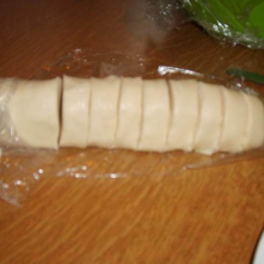 Trascorse le due ore prendiamo il primo rotolo dal frigo e lo tagliamo a fette come e dimostrato in foto 1 cm e mezzo di distacco..