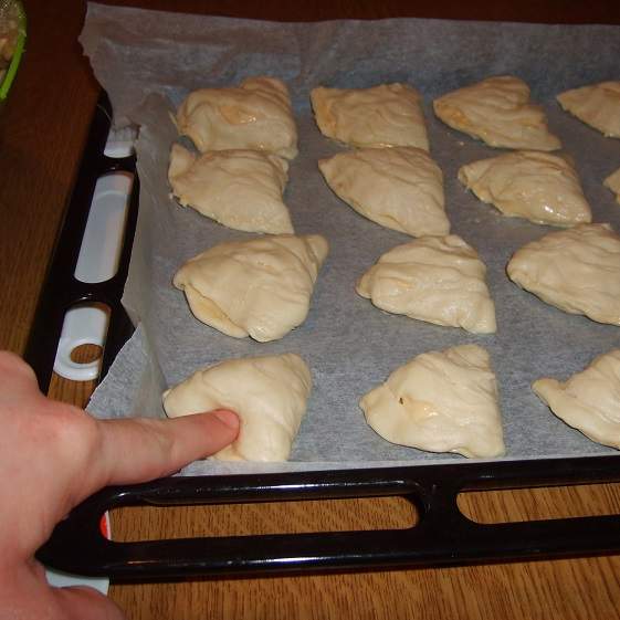 certo il bignè deve cuocere assieme la sfogliatella.. in pratica tu fai il cono con le mani e prima di chiudere a conchiglia con un cucchiaio da cucina inserisci la pasta choux ( cruda) all'interno e devi metterne tanta devi riempire tutto il cono perchè piu sara l'impasto all'interno della sfogliatella piu lieviteranno in forno.. appena metti la pasta del bigne chiudi a forma di conghiglia e lo posizioni nella teglia..