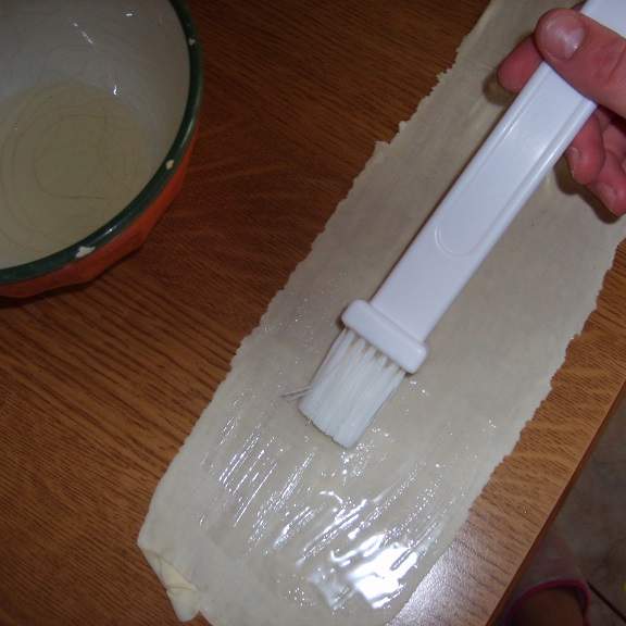 Man mano che formiamo le striscie dobbiamo spennellare con lo strutto liquido