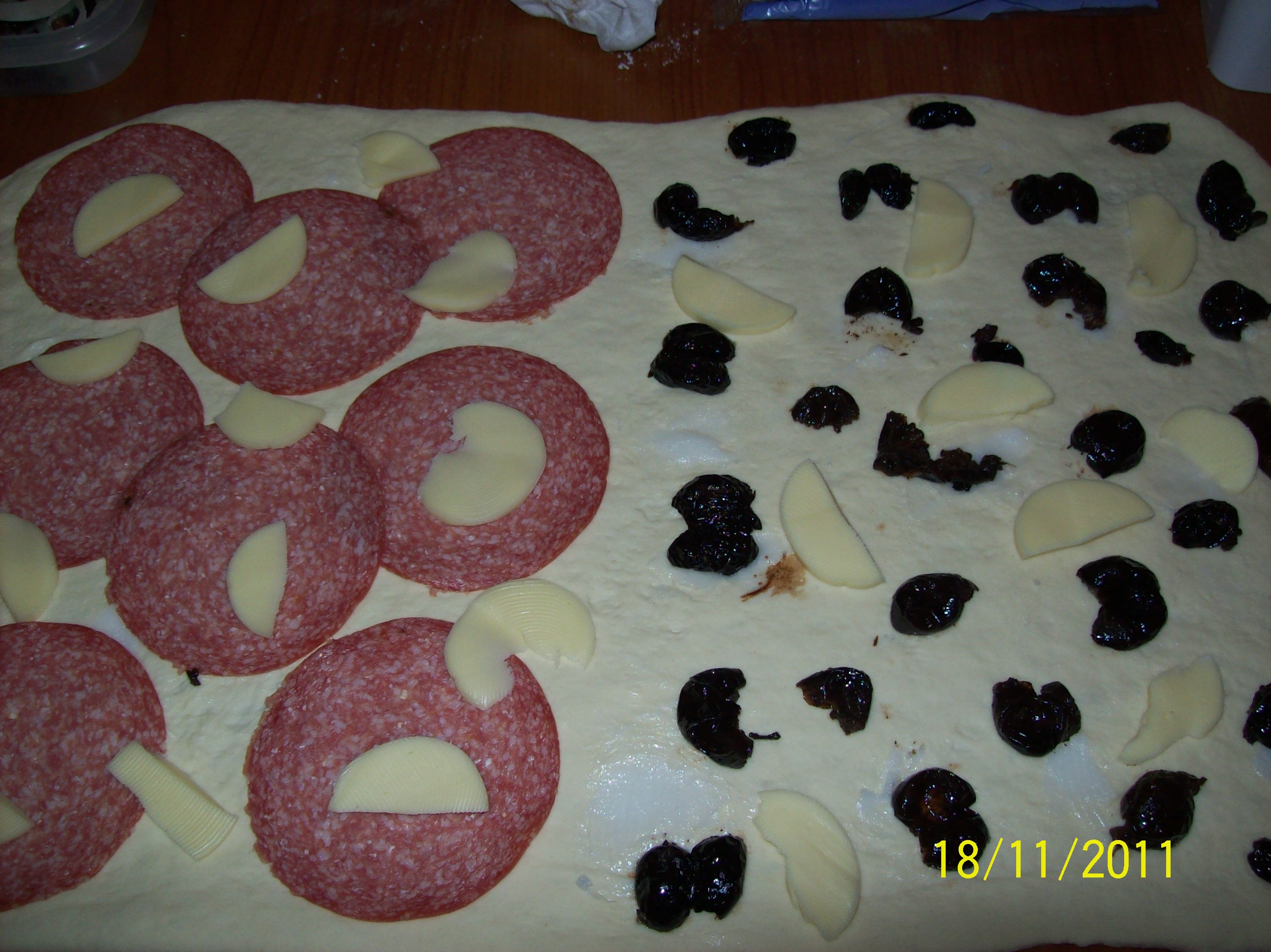 riprendere l'impasto e stendre la pasta formando un rettangolo spalmare la pasta con lo strutto