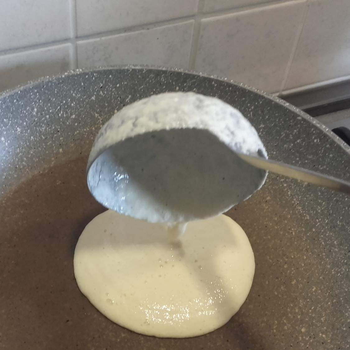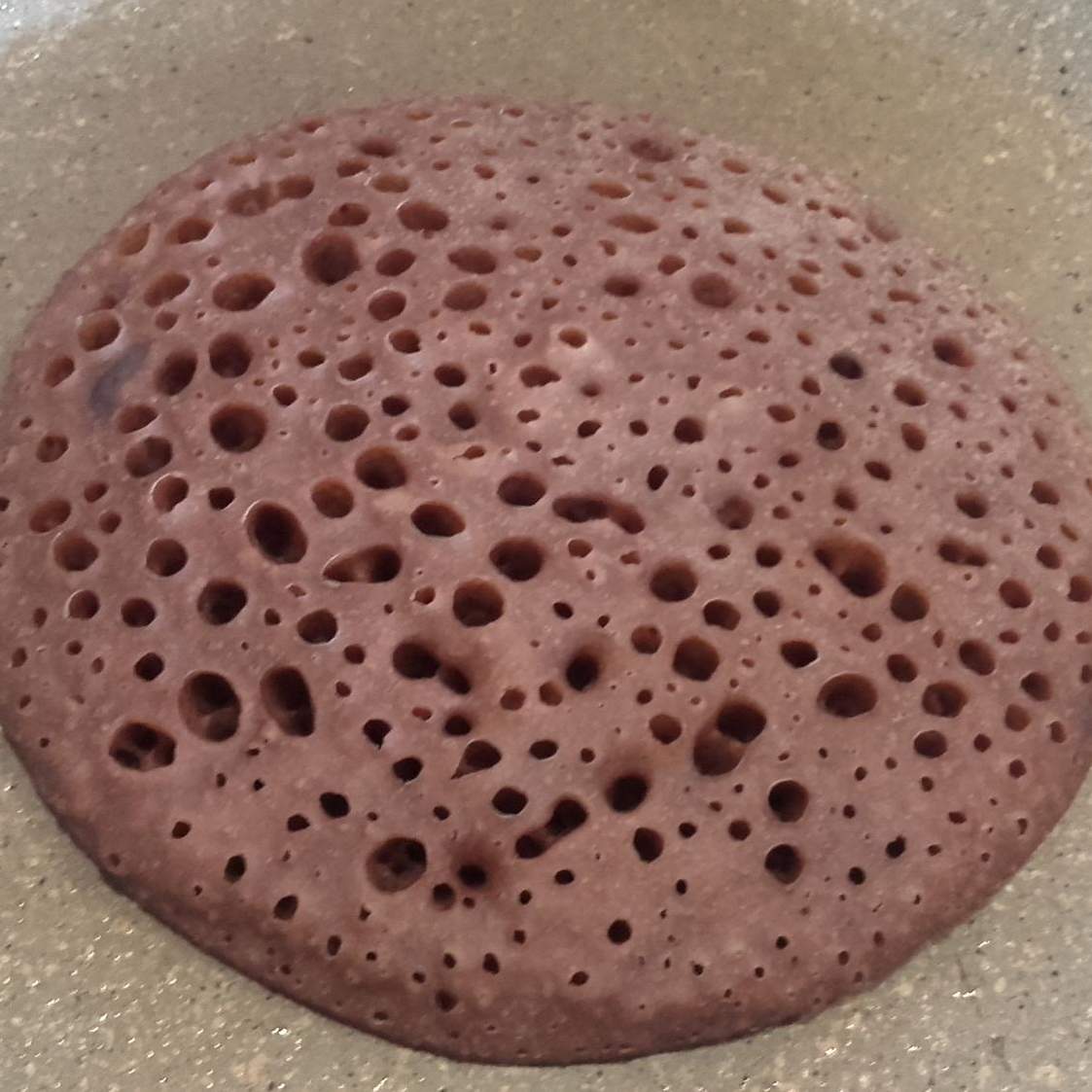 Scaldare una padella antiaderente (fuoco dolce) e stendere un mestolo di pastella (non serve ungere la padella con olio) cuocere all'incirca 5 minuti, si vede quando è cotto in superficie perché cambia colore e diventa come una spugna (non va girato, si cuoce solo da un lato).