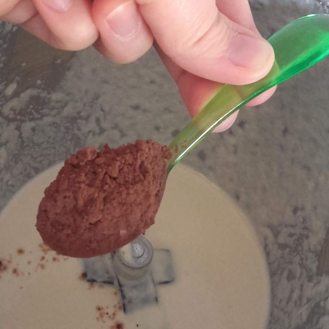 A questo punto mettere il cacao amaro sul resto di pastella 5 sec. Vel. 7. e trasferire su un'altra ciotola.