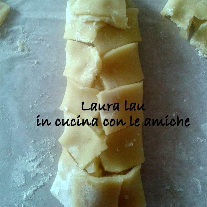 La misura della treccia la decidi tu, ti consiglio di farne diverse di misura media. Puoi anche formare dei dischetti di frolla, farcirli e chiuderli con un altro dischetto di frolla sopra, schiacciando bene i bordi.