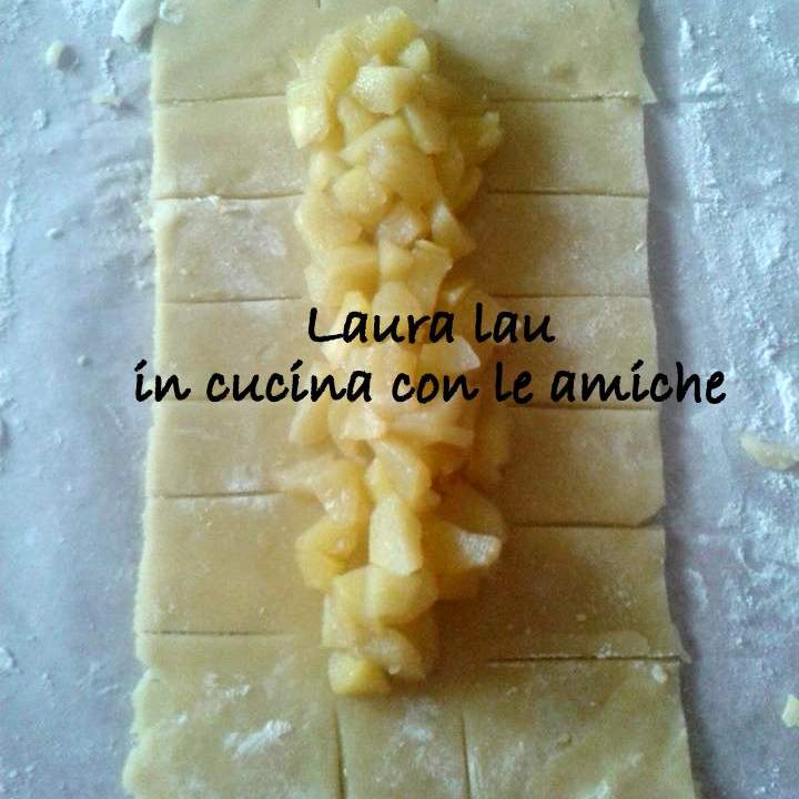 Fai dei tagli ai lati lasciando una parte centrale intatta. Farcisci con la mela.
