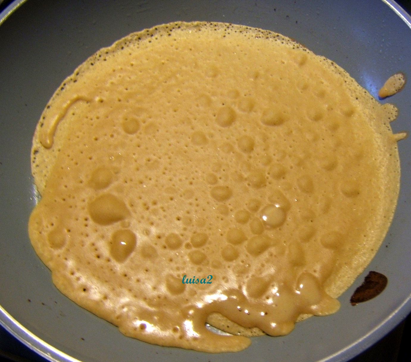con una noce di burro, quando è bello caldo versare un mestolino di pastella, cuocere fino a quando è dorata, aiutandosi con una palettina girarla e cuocere anche l'altro lato.si possono farcire sia con il salato che con il dolce. Tagliate a striscioline si possono usare anche in un brodo.
