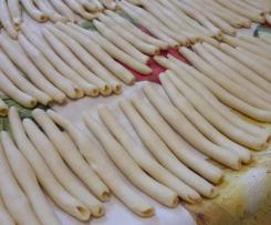 - Con l'aiuto del ferretto stirare i maccheroni spingendo con il palmo delle mano. Sistemarli su un vassoio ricoperto da un canovaccio, non occorre spolverizzare con farina.