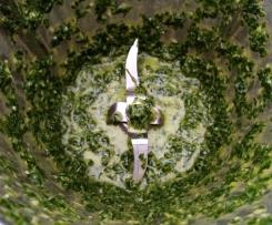 "coperchio chiuso" le foglioline di prezzemolo (lavate e asciugate), la cipolla di Tropea e l'olio Evo 15 Sec. Vel. 6. - Abbassare il composto lungo i bordi con la spatola e cuocere 100°C 3 Min. Vel. 1.