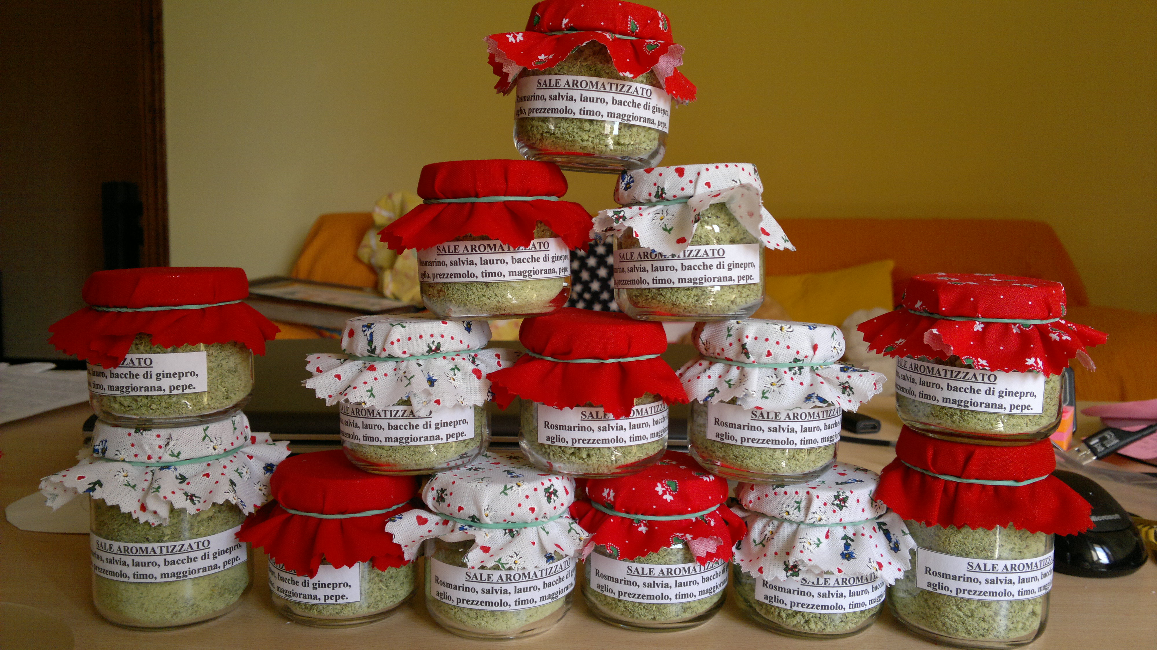 Il sale aromatizzato avrà un bellissimo colore verde ed un intenso profumo. E' l'ideale per aromatizzare patate, arrosti, pesce, carni alla brace ... Si conserva in vasetti. Per esperienza è preferibile preparare il sale aromatizzato in giornate non umide.