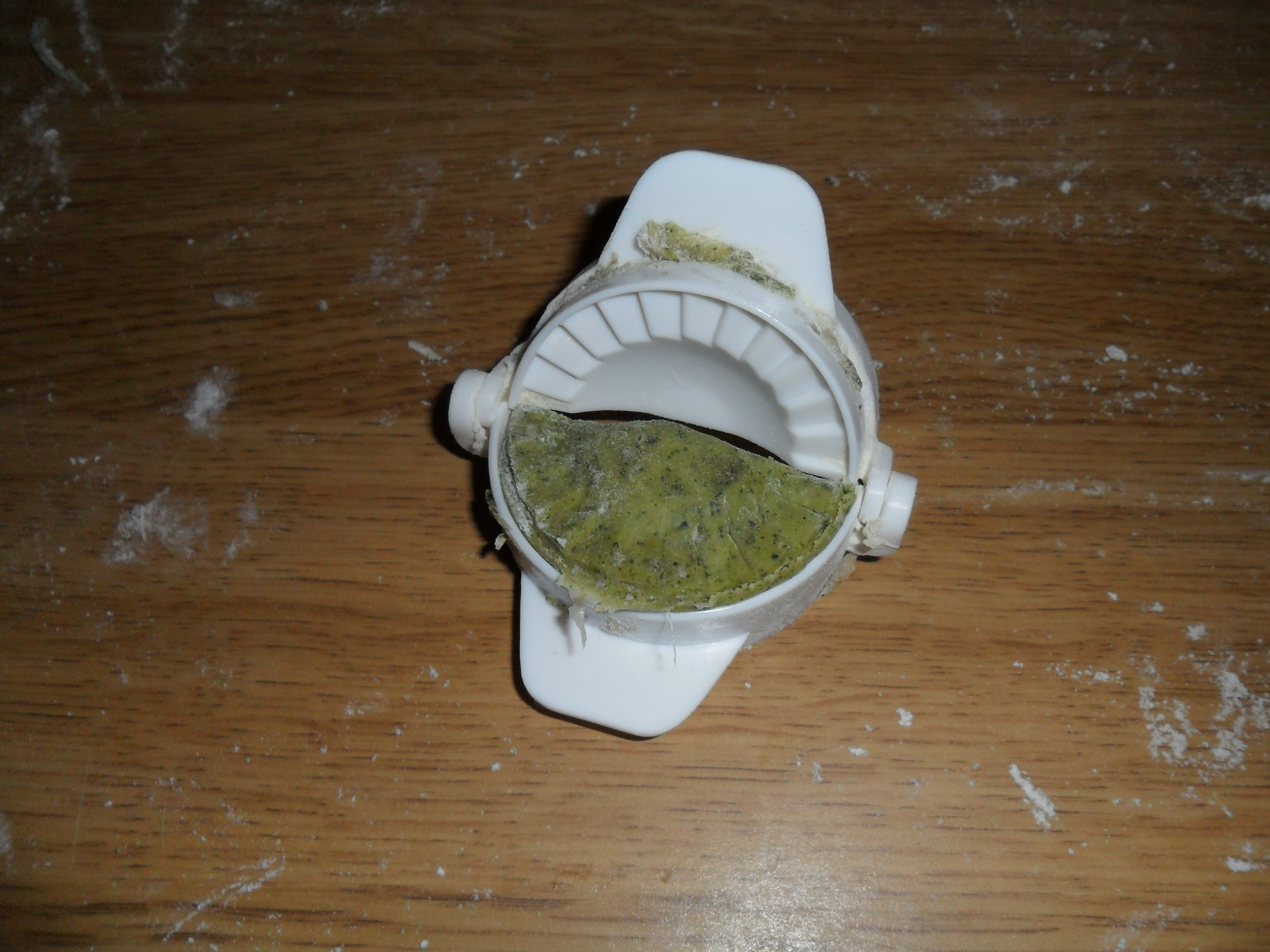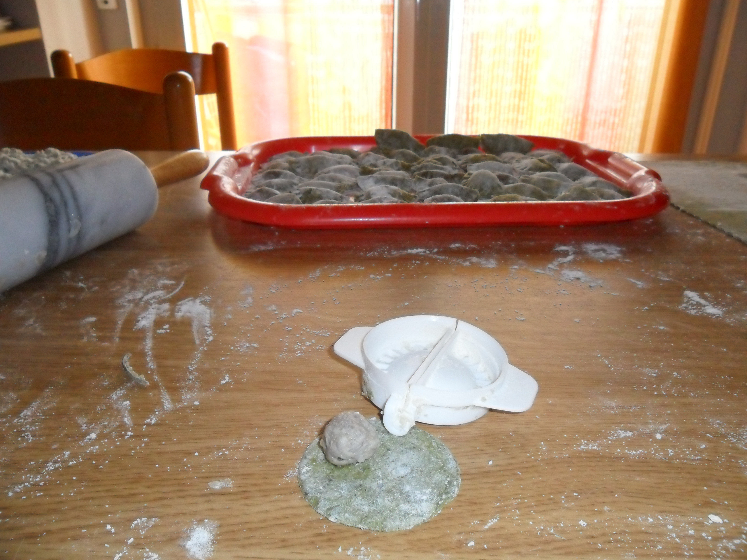 "velocità spiga" per 2' e controllare dal foro che l'impasto nn sia troppo sciutto, altrimenti servendosi del tappo misurino aggiungere gradatamente acqua man mano (non troppa), togliere l'impasto e metterlo a riposare per circa / mezza'ora su un ripiano infarinato e coperto da un canocacio. Trascorso questo tempo tirare la sfoglia o a mattarello o con la macchinetta..sempre infarinando bene l'impasto, non troppo sottile..se volete fare delle mezzelune ci sone degli appositi atrezzini in commercio. Con questa dose d'impasto ho realizzato circa 50 mezzelune, 200 gr.di reginette e gli avanzi di pasta li ho tritati velocemente con le lame in movimento nel