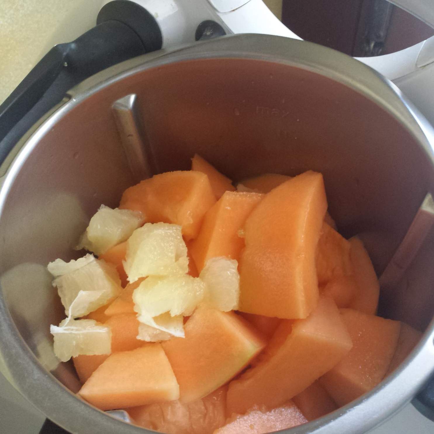 Tagliare un kg di melone A pezzi. Inserirlo nel