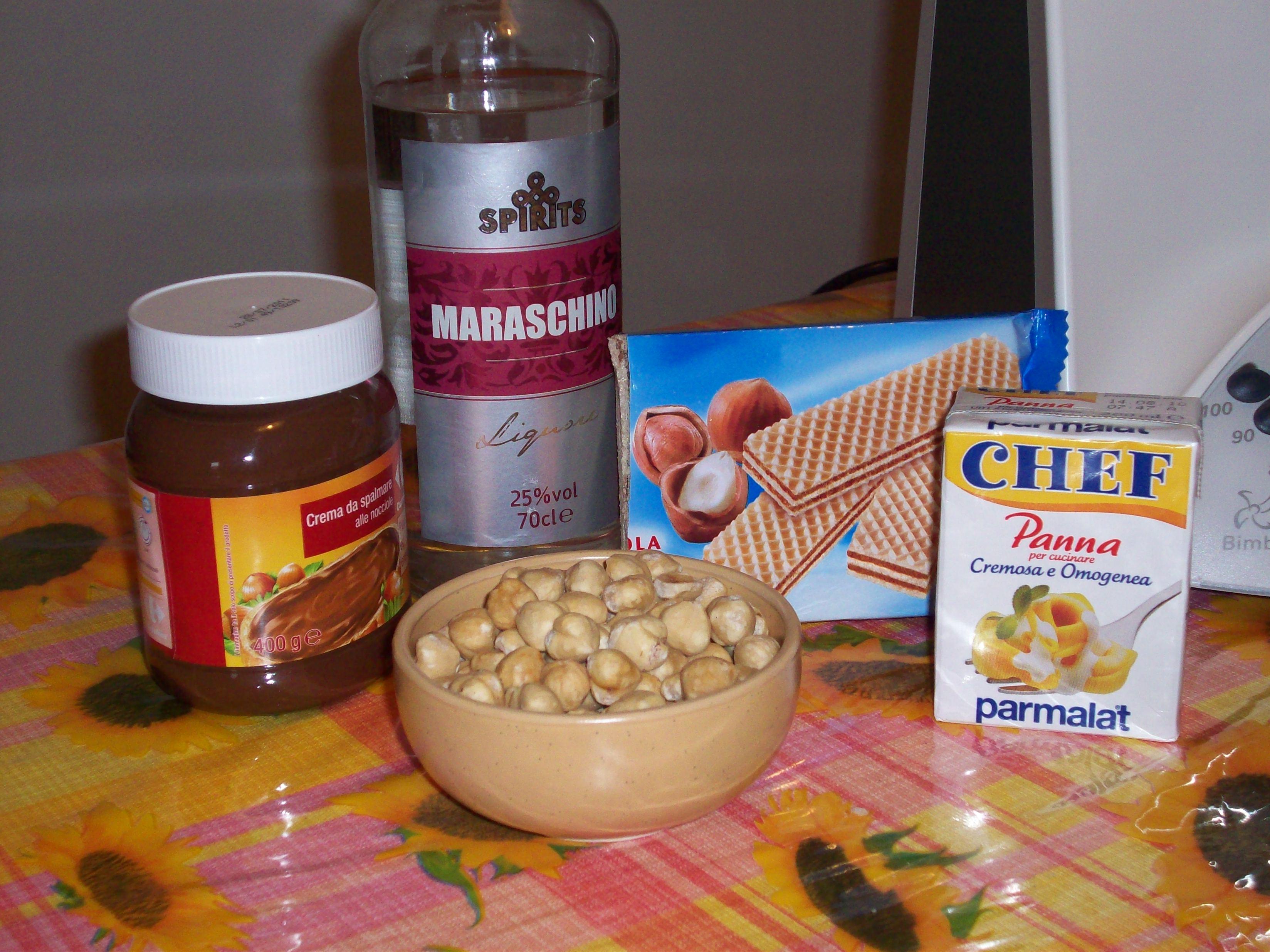 - Aggiungere ora tutti gli ingredienti, le nocciole già tritate, la nutella, la panna e il maraschino e fare andare 1 min. vel.3.