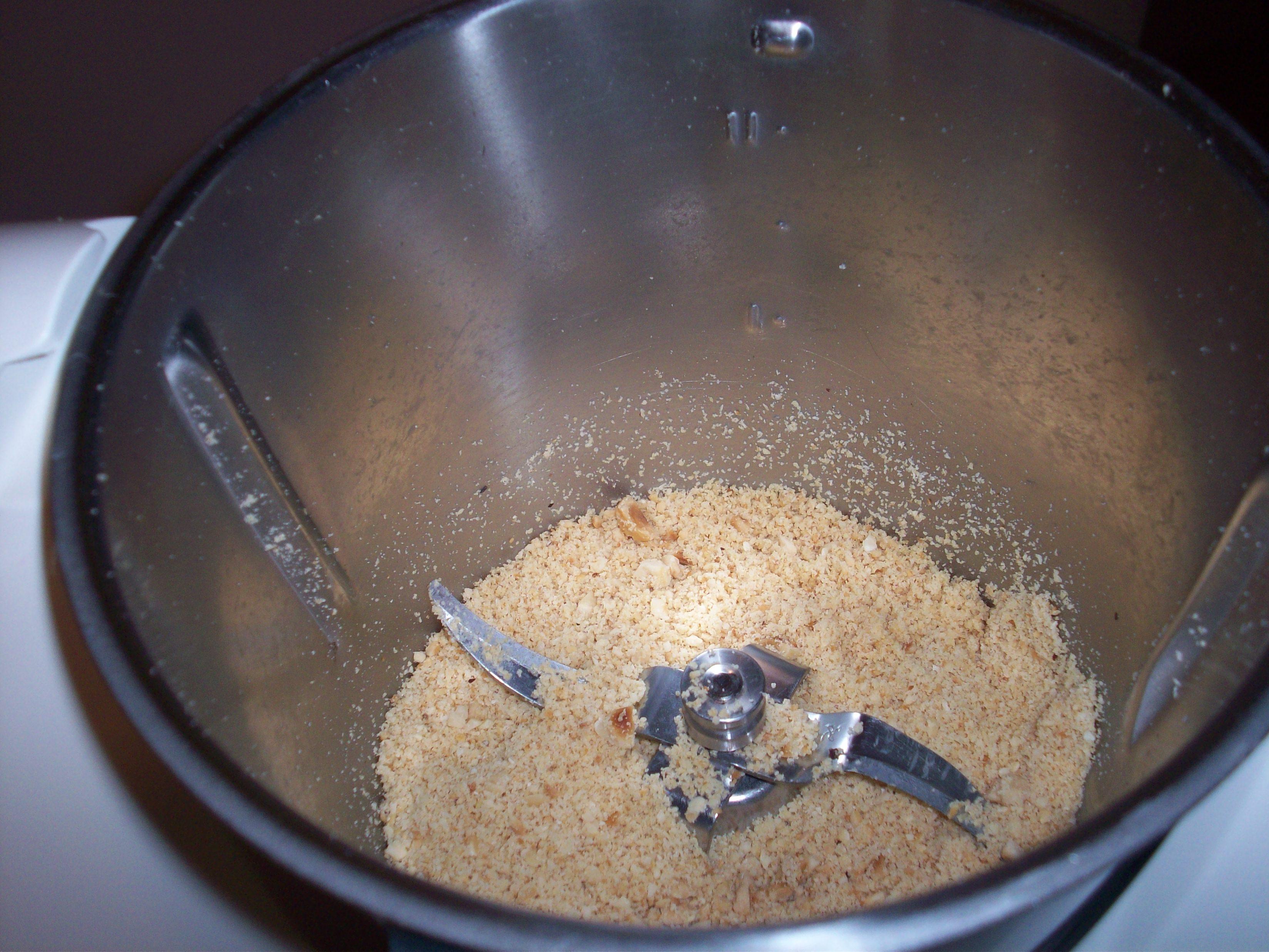 "coperchio chiuso" le nocciole, dare qualche colpo di turbo e metterle da parte; - Inserire ora i wafers e dare sempre qualche colpo di turbo finchè non si saranno sbriciolati;