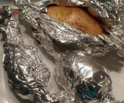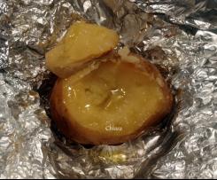 Lavatele e racchiudetele nella stagnola come se fossero delle caramelle. - Mettetele in forno caldo 200° per almeno 30'. Controllate la cottura con uno stuzzicadenti. Aprite il cartoccio e scavate un po' la superficie con un cucchiaino.