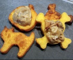 Condite con un po' di sale e olio. - Riempire l'incavo conl sugo di funghi e servire.