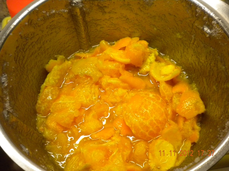 Sbucciare le clementine e ripulite le bucce da eventuali imperfezioni o ammaccatura, fatele bollire due volte per qualche minuto (operazione che potete fare anche sui fornelli) e buttate l'acqua, inserite poi nel boccale tutti gli ingredienti e cuocete 1 ora a temp. 100° Vel. 1