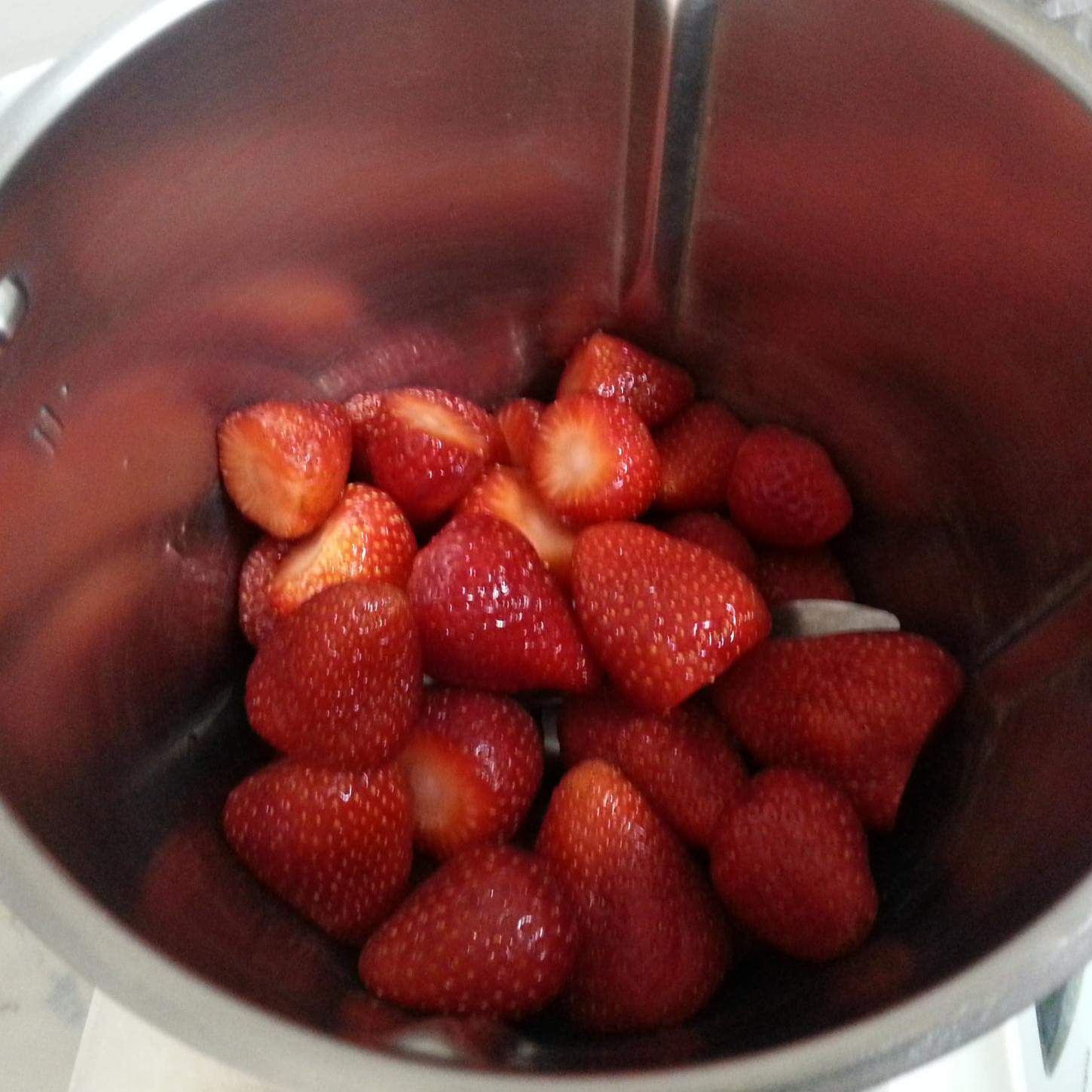 1. Frullare le fragole per 15 sec. vel.3, unire il succo di limone e lo zucchero e cuocere 15 minuti 100° vel.2.