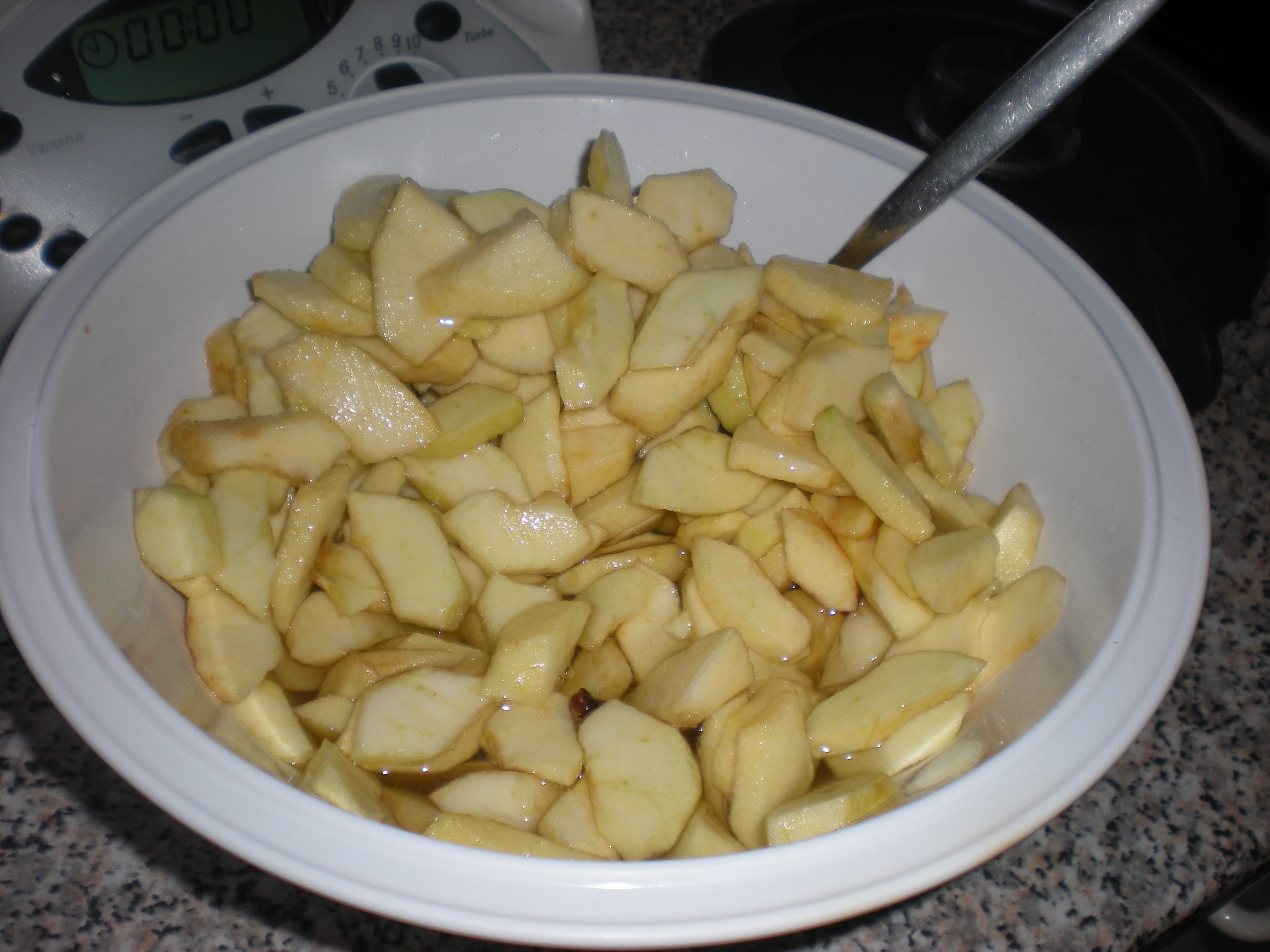 Mettere le mele con lo zucchero e i chiodi di garofano in una ciotola a macerare per 24 ore. Trascorso il tempo di macerazione, versare le mele con il liquido che avranno rilasciato nel