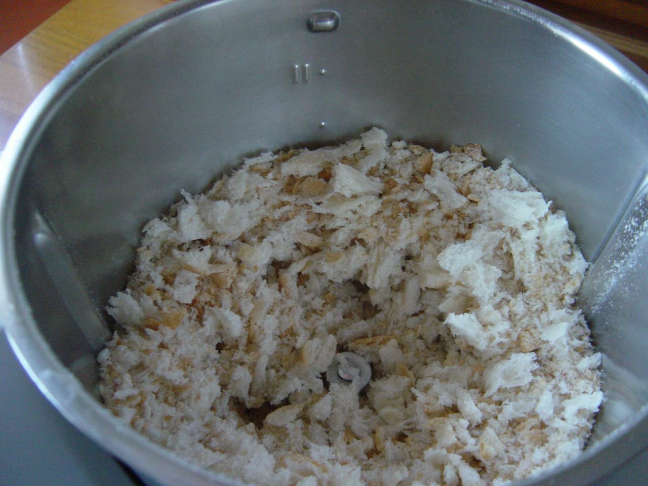 - Senza lavare il boccale, inserirvi i pezzi di pane raffermo e tritare grossolanamente: 10 sec./vel. 7.