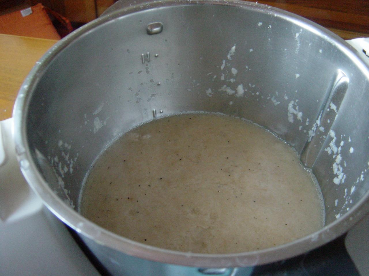 Il formaggio grana si metteva già all'inizio della cottura e le molte ore sul fuoco creava una crosticina sul fondo molto gustosa che andava ruba. Questa è l'unica cosa che manca alla ricetta fatta con Bimby.