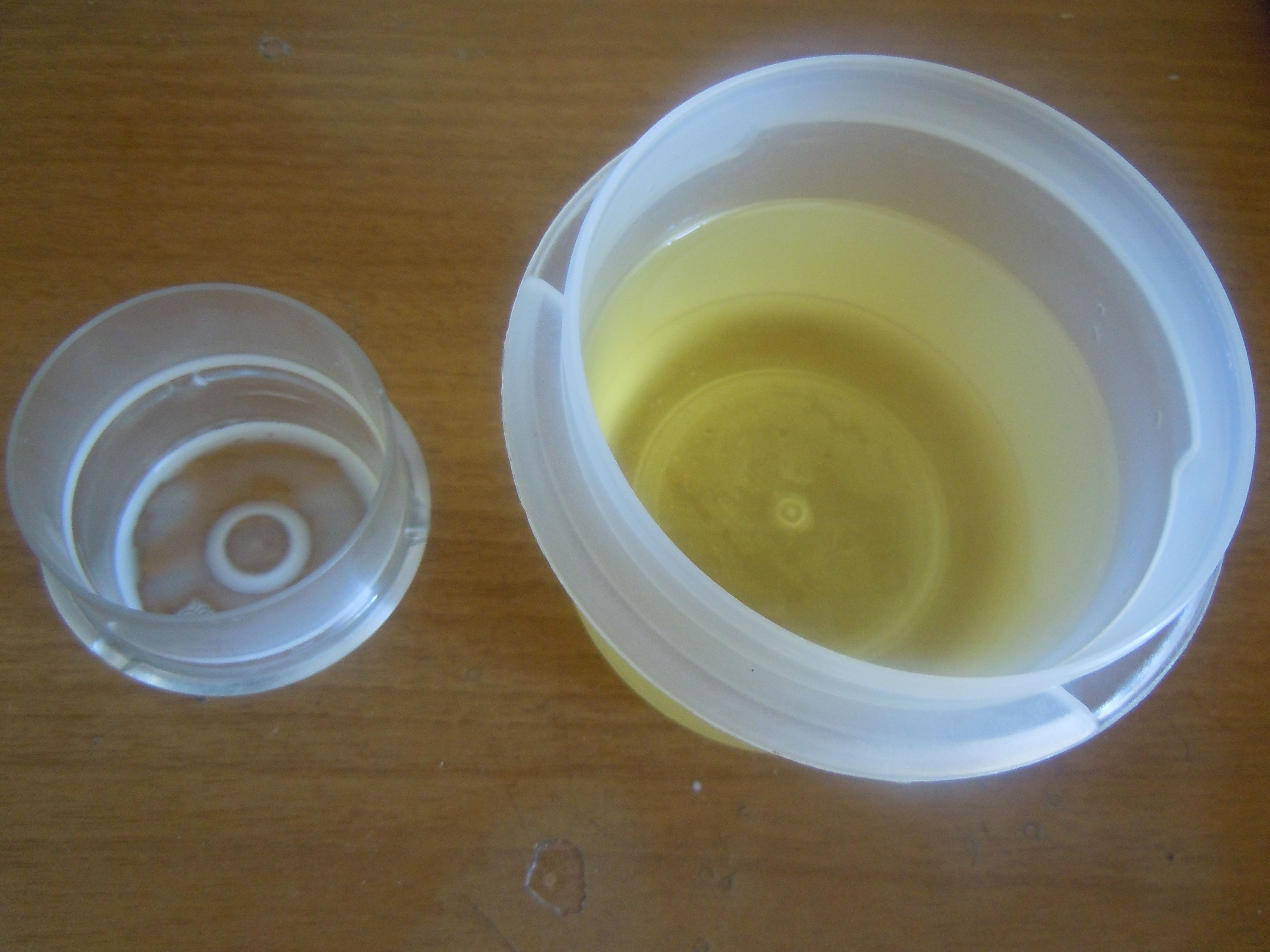 se metti il misurino come nella foto (ma anche a foro in giù) l'olio cola nel boccale.