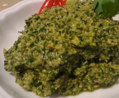 Un pesto gustoso e di facile realizzazione. Si può usare per condire la pasta, insaporire un minestrone o spalmare su crostini di pane. Versare il pesto in un vasetto, coprire con un filo d'olio e conservare in frigorifero (per circa una settimana).