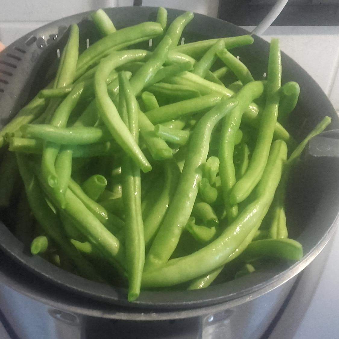 Spuntare, lavare e inserire i fagiolini nel cestello.