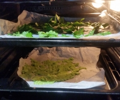 Una volta caldo informate il composto sotto e sopra le foglie come ho fatto io ed di intanto intanto invettive le placche forno e mescolate in modo che si asciughi bene ci vorranno 2 ore logicamente regolate sempre in base al vostro forno se disponete di un essiccatore ancor meglio io ho messo poco sedano ma se voi ne volete di più aumentate - Trascorso il tempo se il vostro sedano sarà ben essiccato toglierlo dal forno