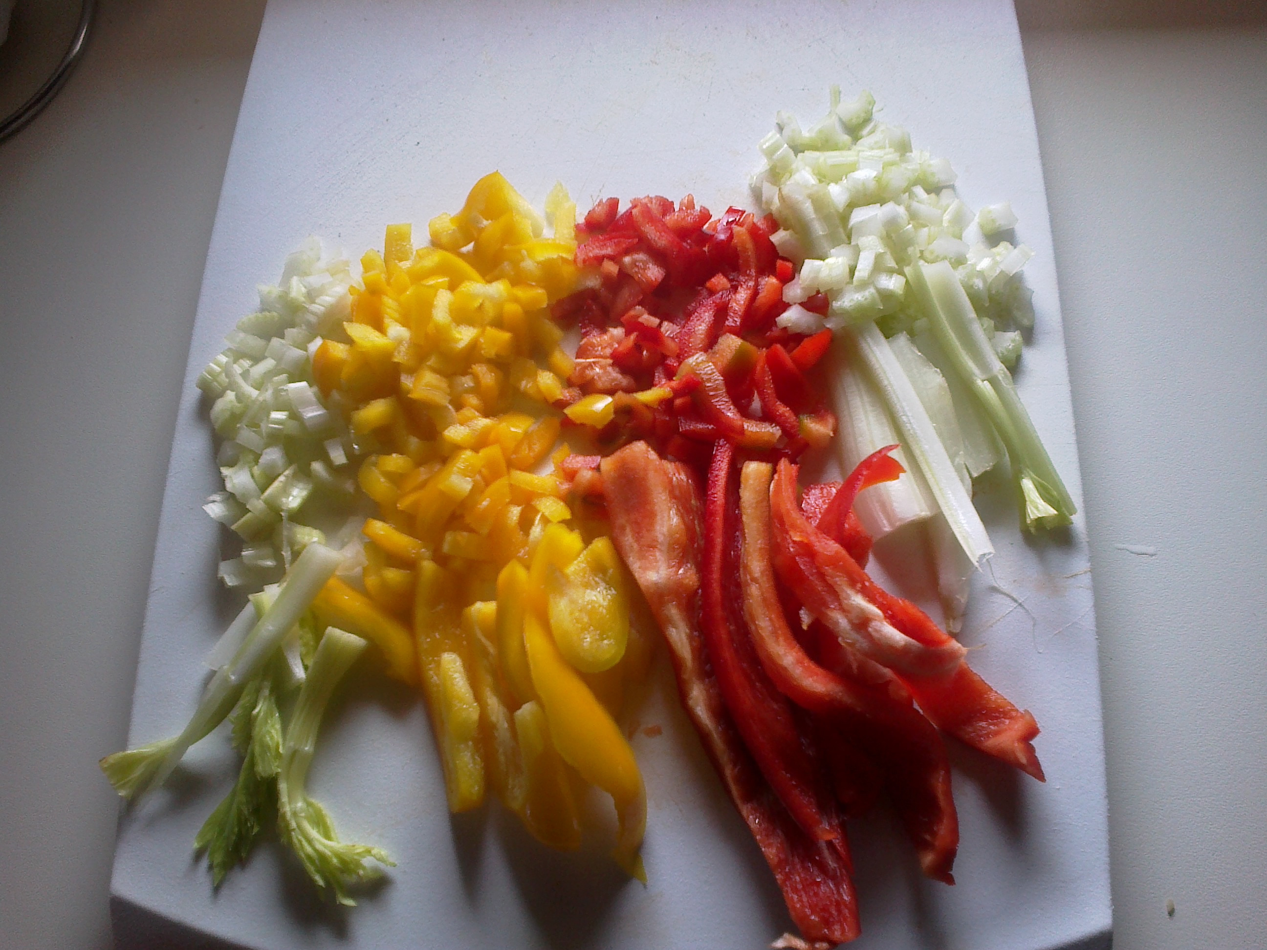 "coperchio chiuso" versare 1000 gr di acqua ,posizionare il varoma e cuocere 25' temp.varoma vel 2 -Nel frattempo tagliare a listarelle sottili le verdure e poi a tocchetti .Preparare gli ingredienti della citronette.