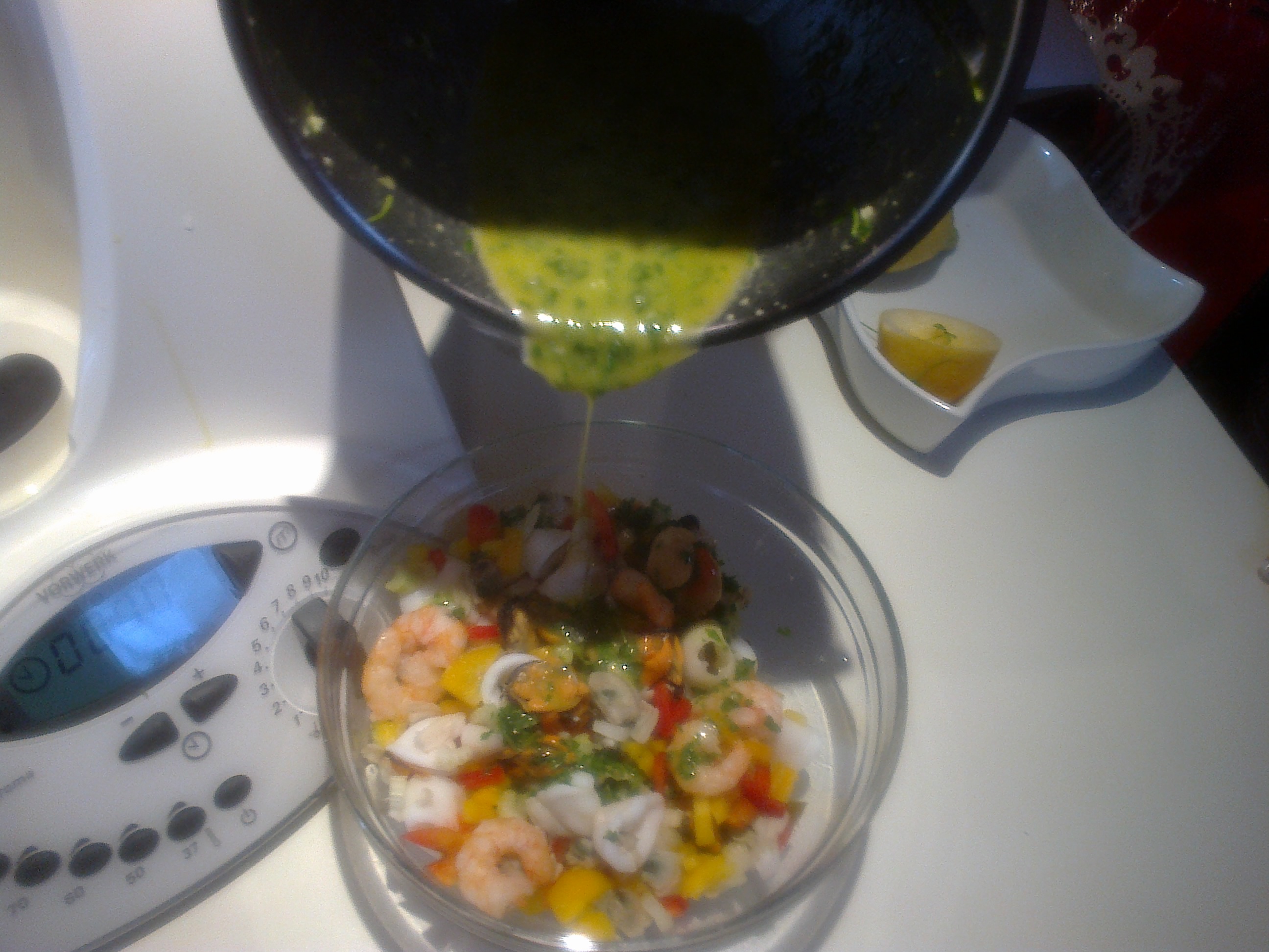 "velocità soft" -Mettere la salsa in una ciotola nel centro del piatto da portata con l'insalata di mare