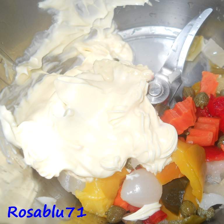 Questa salsa tartara e' nata per una ricetta che ho fatto e che presto inseririo e' molto buona anche per condire il pesce le verdure e in questo caso anche per insalate di riso che ho fatto