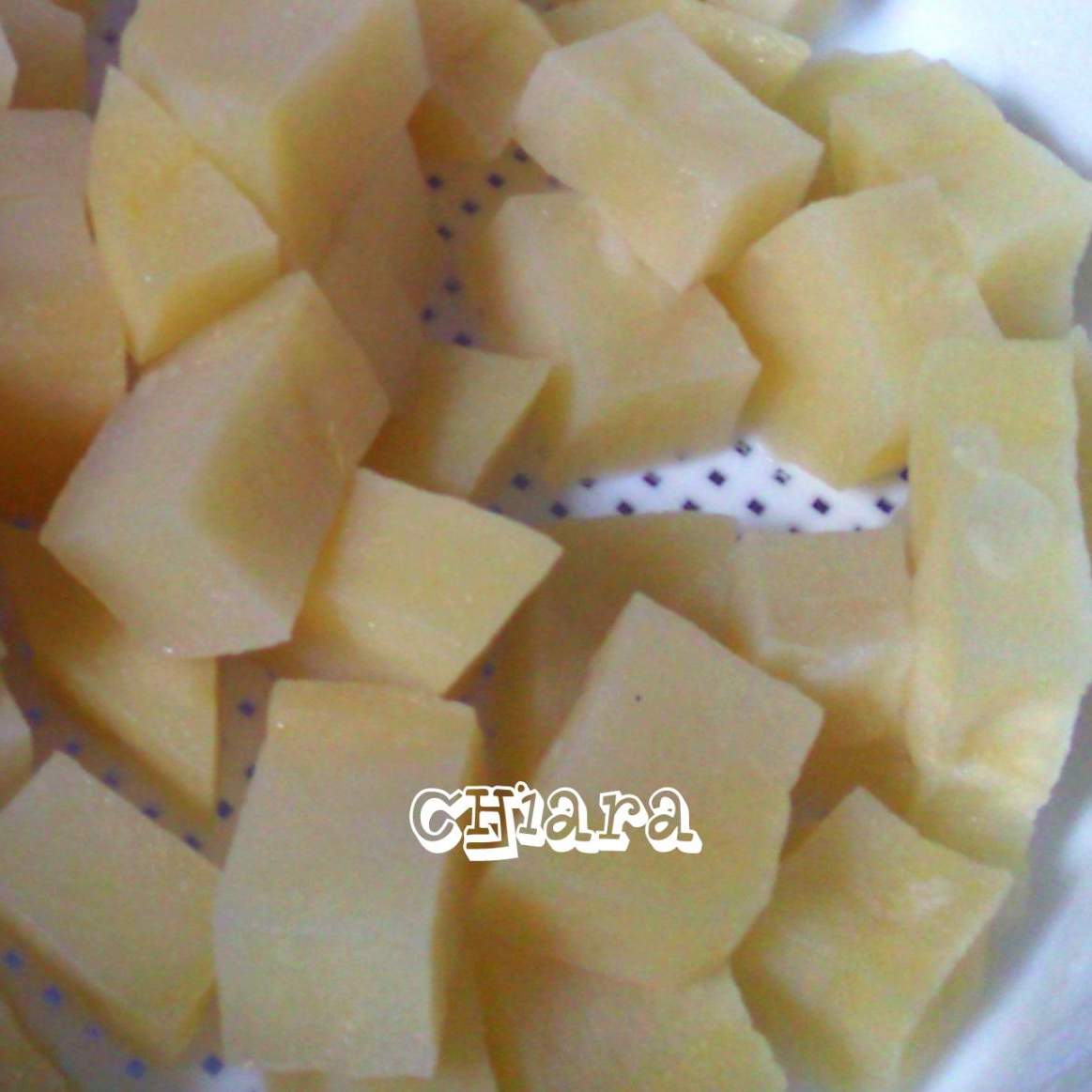 Potete cuocerla, pelandola e tagliandola a cubetti, nel cestello mettendo acqua nell boccale fino alle lame: 20' varoma vel 1.